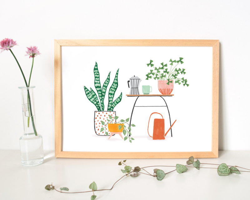 A4 print van de Planten & Koffie tekening van Studio Kuukeluus.