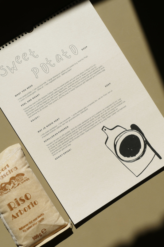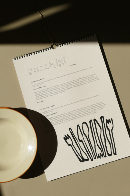 Esther heeft voor deze kalender haar favoriete recepten bij elke maand van het jaar gematcht. Op de achterkant van elke maand staat het recept uitgeschreven zodat je het zelf ook kan maken. Het zijn korte, makkelijke recepten zowel in het Engels als het Nederlands beschreven. Zo zijn er bijv. Oatmeal Cookies in januari, Plum Pie in augustus en Lentil Soup in oktober.
