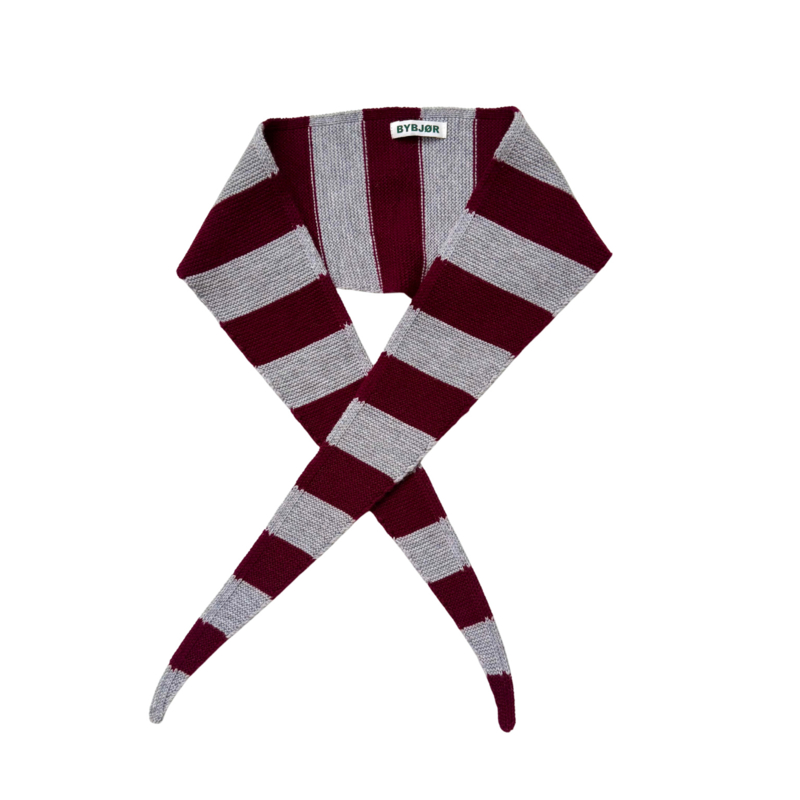 Mini Wool Chunky Stripe Scarf Burgundy/Grey - Bybjor