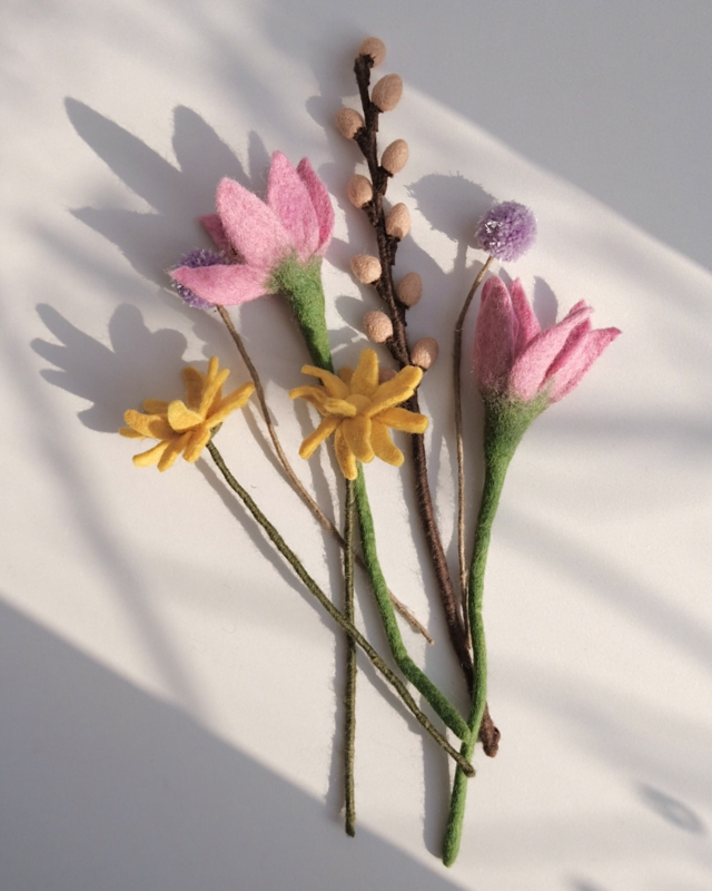 De Endless Flowers zijn handgemaakt van pure wolvilt met ijzerdraad in de steeltjes zodat je ze kunt stylen zoals jij dat wil. Gekleurd zonder chemicaliën (AZO-vrij). Om een leven lang van te genieten.