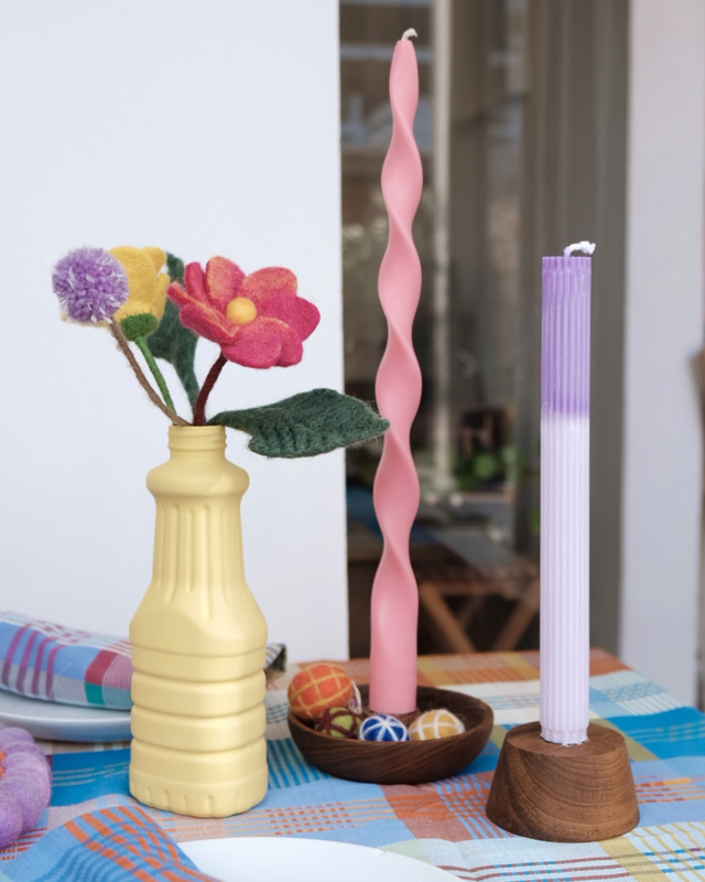 Op de 2e foto zie je het de eitjes met de wolvilten Willow Natural, Tulip Nude en Lilac Thistle; allemaal ook van Aveva Design. Op de 3e foto liggen de eitjes in het schaaltje van de Bowl kandelaar van Original Home.