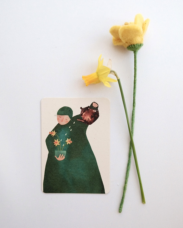 Stuur iemand een symbolisch bosje bloemen met deze fijne kaart van Madame Ziba. Een mooie groene kaart om het voorjaar en de nieuw groeiende bloem(bolletjes) mee te vieren.