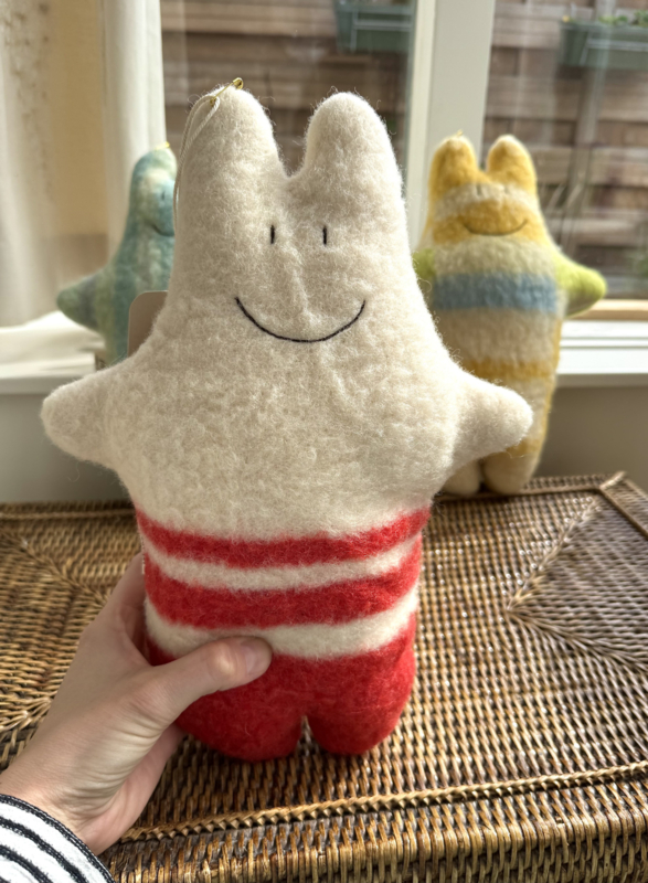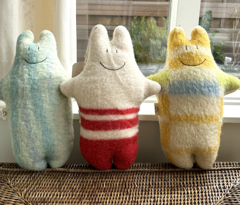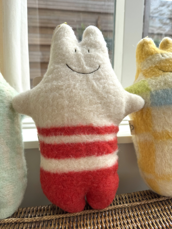 De Nederlandse Nanine van Sammy Ray bewijst dat je van restmateriaal de mooiste dingen kunt maken. Deze lieve knuffel is gemaakt van vintage wollen dekens en gevuld met knipafval van de andere Sammy Ray producten. Een zero waste knuffel dus!