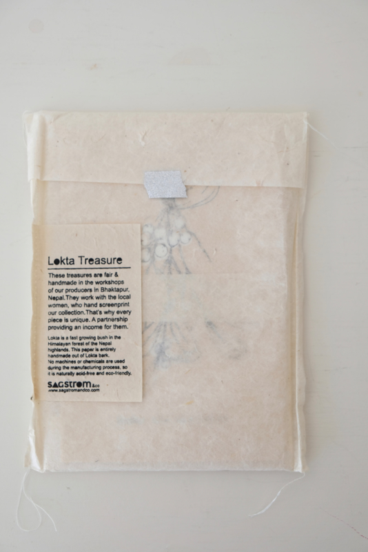 De set zit verpakt in een mooi mapje van hetzelfde handgeschepte papier