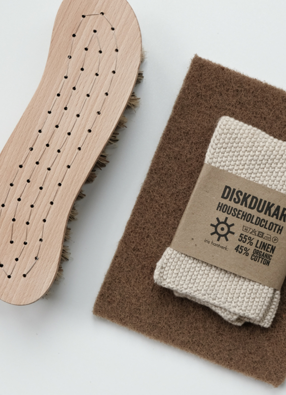 Hardnekkig vuil poets je zo weg met deze eco-schuurspons van het Zweedse merk Iris Hantverk. Deze spons bestaat uit gerecyclede en rest-materialen, deels synthetisch en deels organisch.