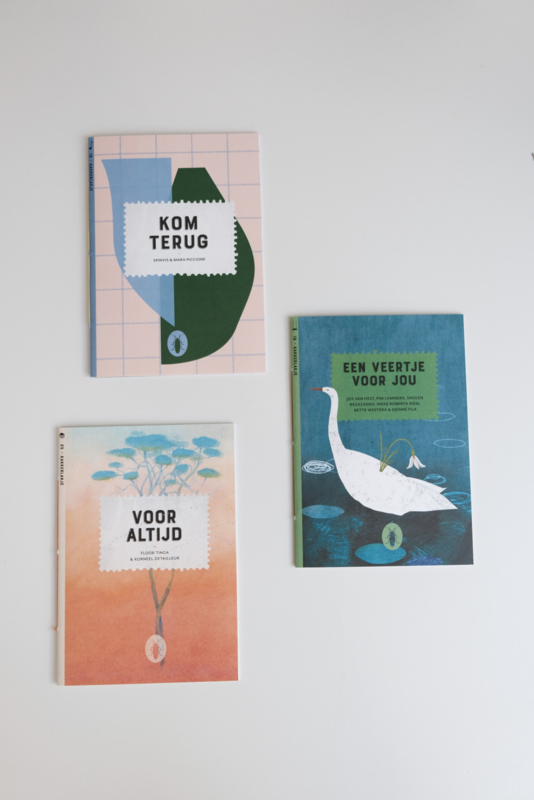 "Kom Terug" van Uitgeverij Loopvis komt uit de Kakkerlakjes-collectie. Kakkerlakjes zijn boekjes met verhalen, gedichten, soms liedteksten, of tips en recepten maar altijd met veel illustraties. Groot genoeg om lang van te genieten en klein genoeg om in een envelop te versturen. Net als de beestjes is het idee van Loopvis, blijven woorden en illustraties altijd bestaan, wat er ook gebeurt.