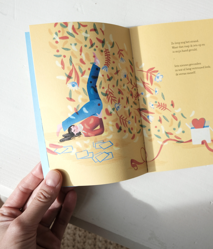 Op de kaft aan de binnenkant van het boekje is ruimte om een persoonlijke boodschap op te schrijven. En er zit een envelop bij. Als je het boekje per post verstuurt moeten er 2 postzegels op.