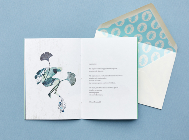 In het boekje is ruimte om een persoonlijk bericht te schrijven. En er zit een envelop bij het boekje. Als je het per post opstuurt moeten er 2 postzegels op.