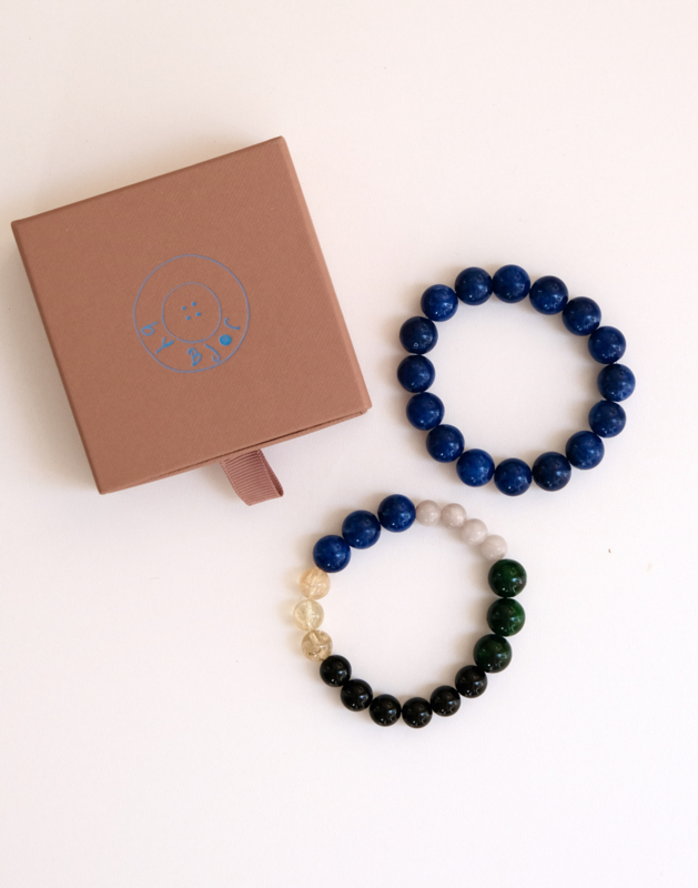 Bjørke van Bybjor maakt haar sieraden in haar studio in Bussum. De kralen van deze collectie zijn gemaakt van glas en jade.