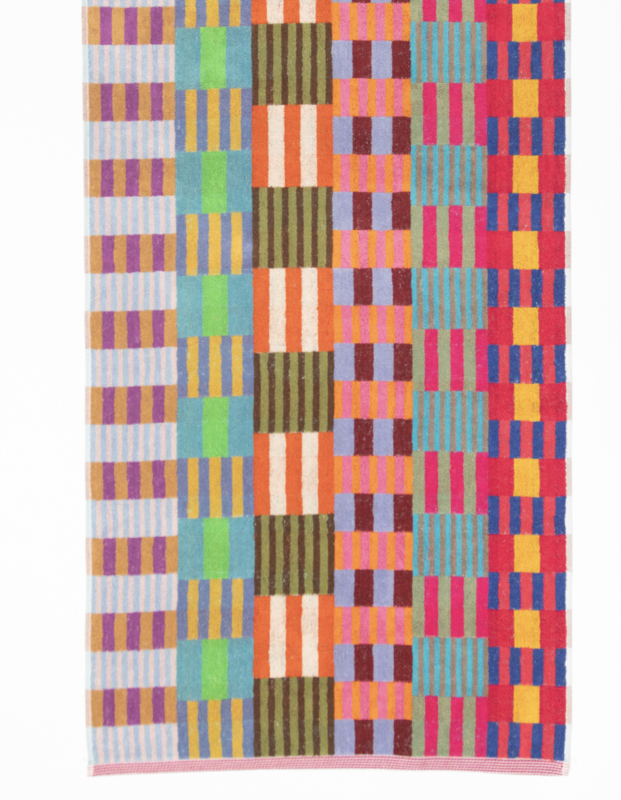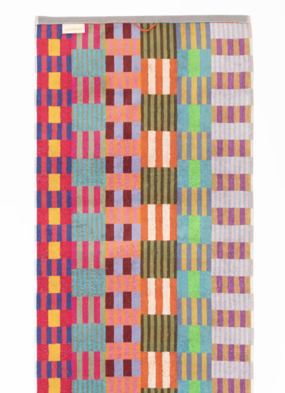 Bijzonder kleurrijke badhanddoek, gemaakt van gerecycled rest-garen uit de handdoeken industrie. Deze 81e editie van de Odds & Ends collectie van Foekje Fleur  is het nieuwste model badhanddoek met heel veel kleuren die mooi past bij de badmatten en set washandjes van hetzelfde merk.