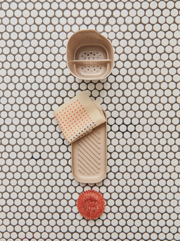 Opgeruimd staat netjes met deze set op het aanrecht. Perfect om je spons/doekje/stuk zeep en (afwas)borstels in op te ruimen. Het schaaltje heeft hoge ribbels zodat je zeep of spons droog ligt en ook het bakje heeft gaatjes onderin zodat het water eruit kan.