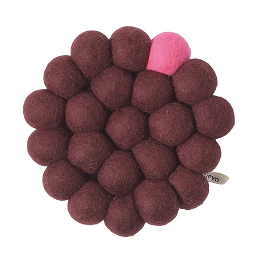 Onderzetter Bold Bordeaux - Aveva Design Maat: 21 cm doorsnee en 4 cm dik // 400 gram // met lusje om aan op te hangen Materiaal: 100% wol Past in een brievenbus pakketje
