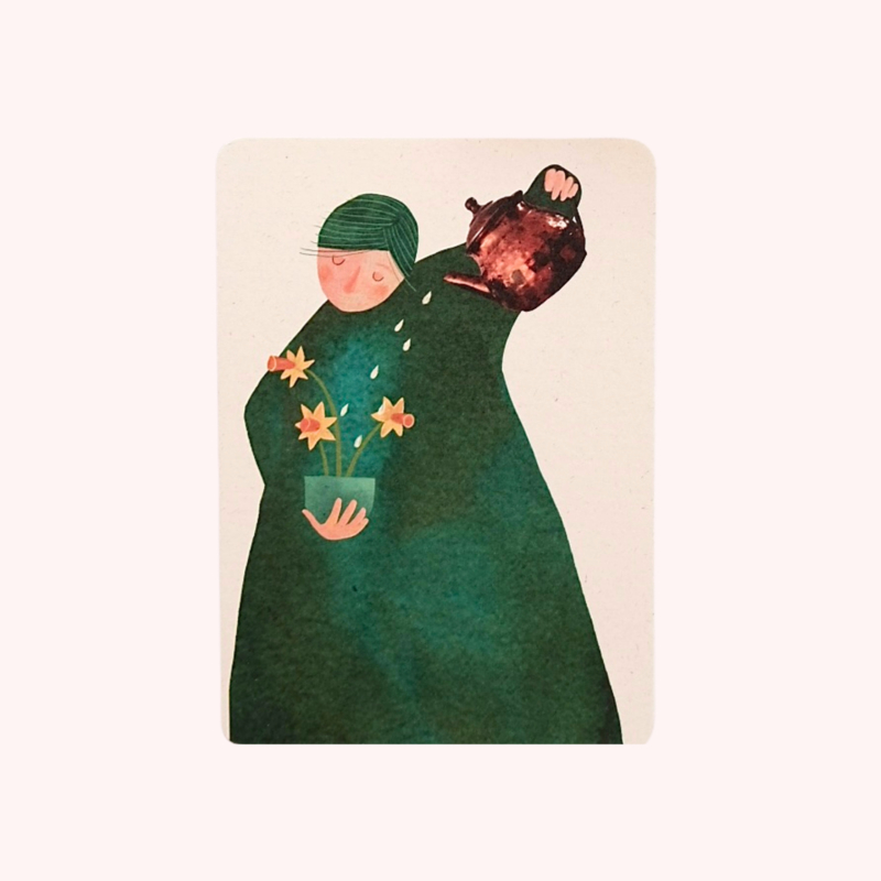Naamgenoot Evelien is de tekenares achter het merk Madame Ziba. Zij ontdekte Licht & Fijn, stuurde mij een berichtje en zo ontdekte ik haar mooie werk. Ik vind haar dromerige stijl, prachtige kleuren en fijn rustige uitstraling met veel groen zo fijn om aan de muur te hangen of naar iemand op te sturen.