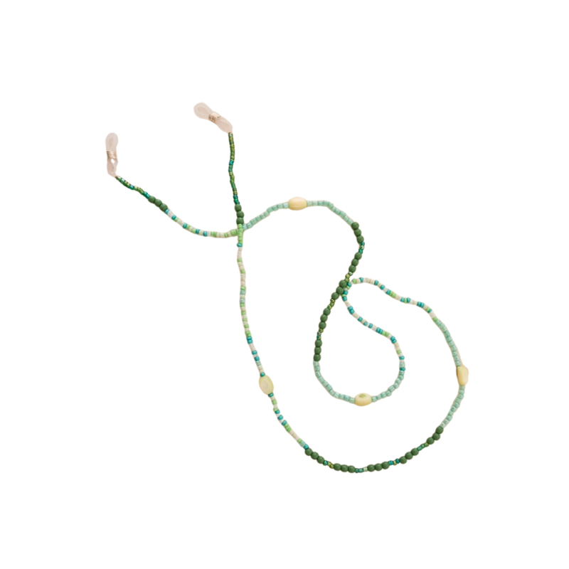 Zonnebril Koord Groen - Sammy Ray Maat: 70 cm lang Materiaal: tweedehands kralen op elastieken draadje met rubberen lusjes om aan je bril te bevestigen Past in een brievenbus pakketje