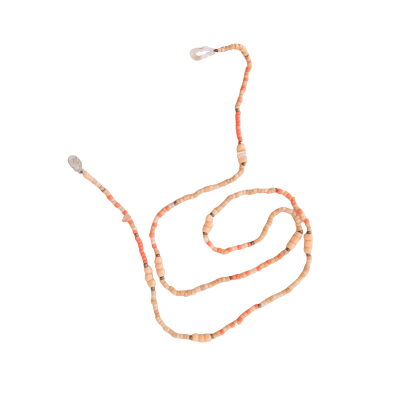 Zonnebril Koord Koraal - Sammy Ray Maat: 70 cm lang Materiaal: tweedehands kralen op elastieken draadje met rubberen lusjes om aan je bril te bevestigen Past in een brievenbus pakketje
