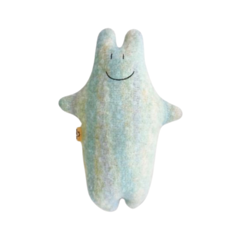 Baby Hippo Knuffel Blauw/Groen - Sammy Ray Maat: 35 cm hoog en ongeveer 9 cm dik Materiaal: buitenkant van vintage wollen dekens en gevuld met knipafval van textiel