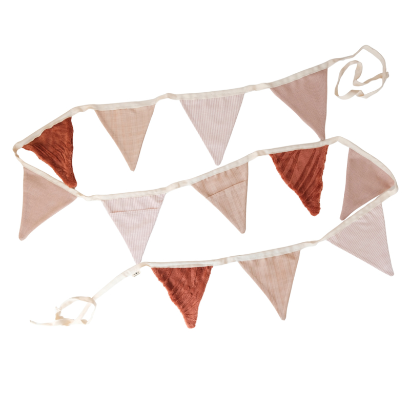 Vlaggenlijn Oudroze - Sammy Ray Maat: 4 meter lang, de vlaggetjes zijn ieder ongeveer 15 cm breed en 17 cm lang Materiaal: vlaggetjes van resttextiel
